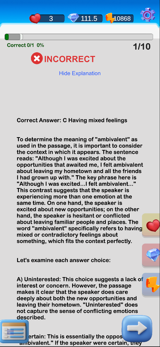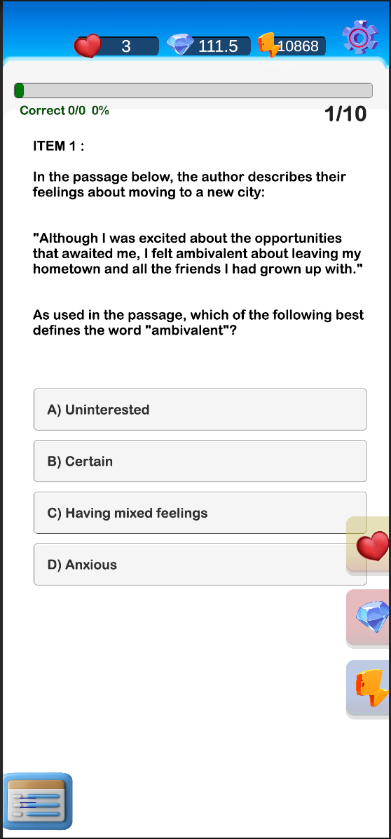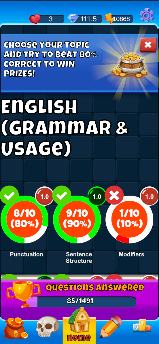 To win back 80% of your purchase price, you’ll need to complete roughly 30% of the questions in your full access module. Gift cards are not avialbe in the freemium version.
